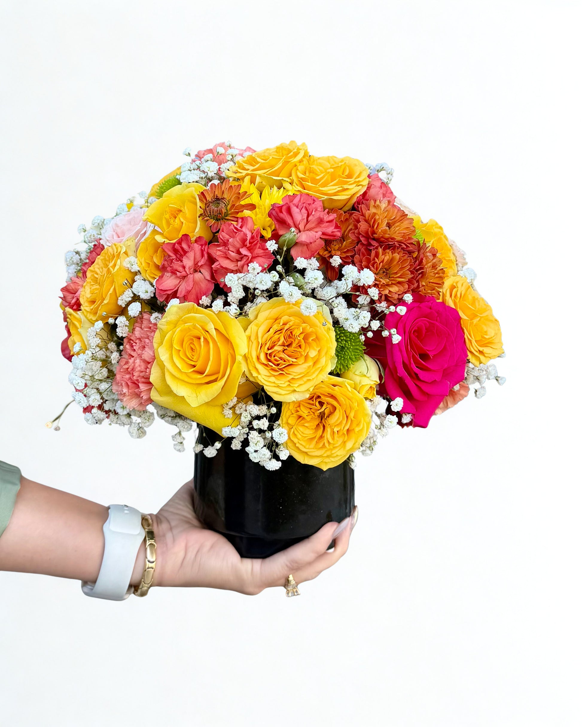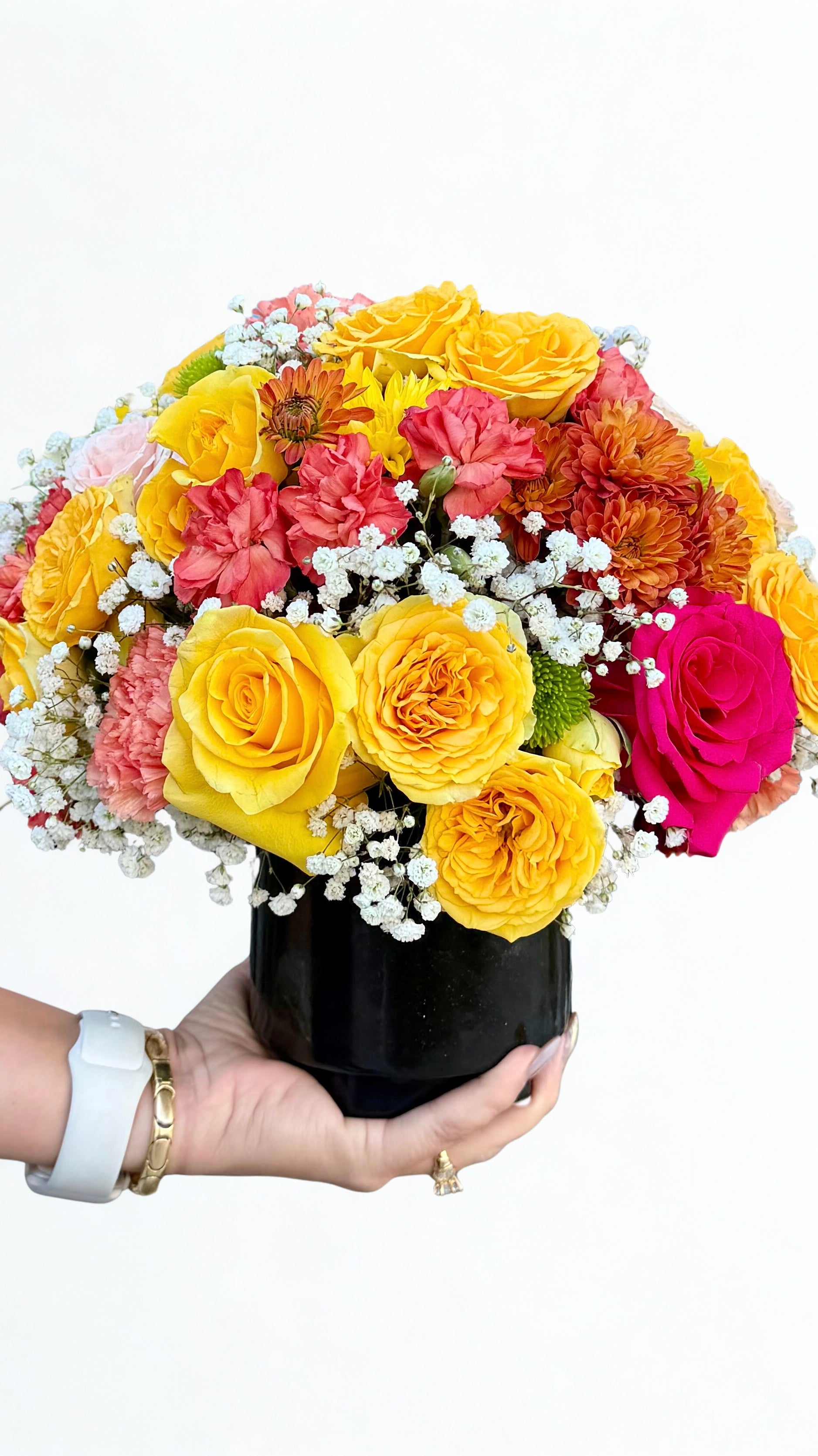Experience the exclusivity of our Bloom Essence flower arrangement. Each one comes with a uniquely chosen base, selected at the moment to perfectly complement the arrangement. Let us surprise you with the perfect color to enhance the beauty of your flowers.