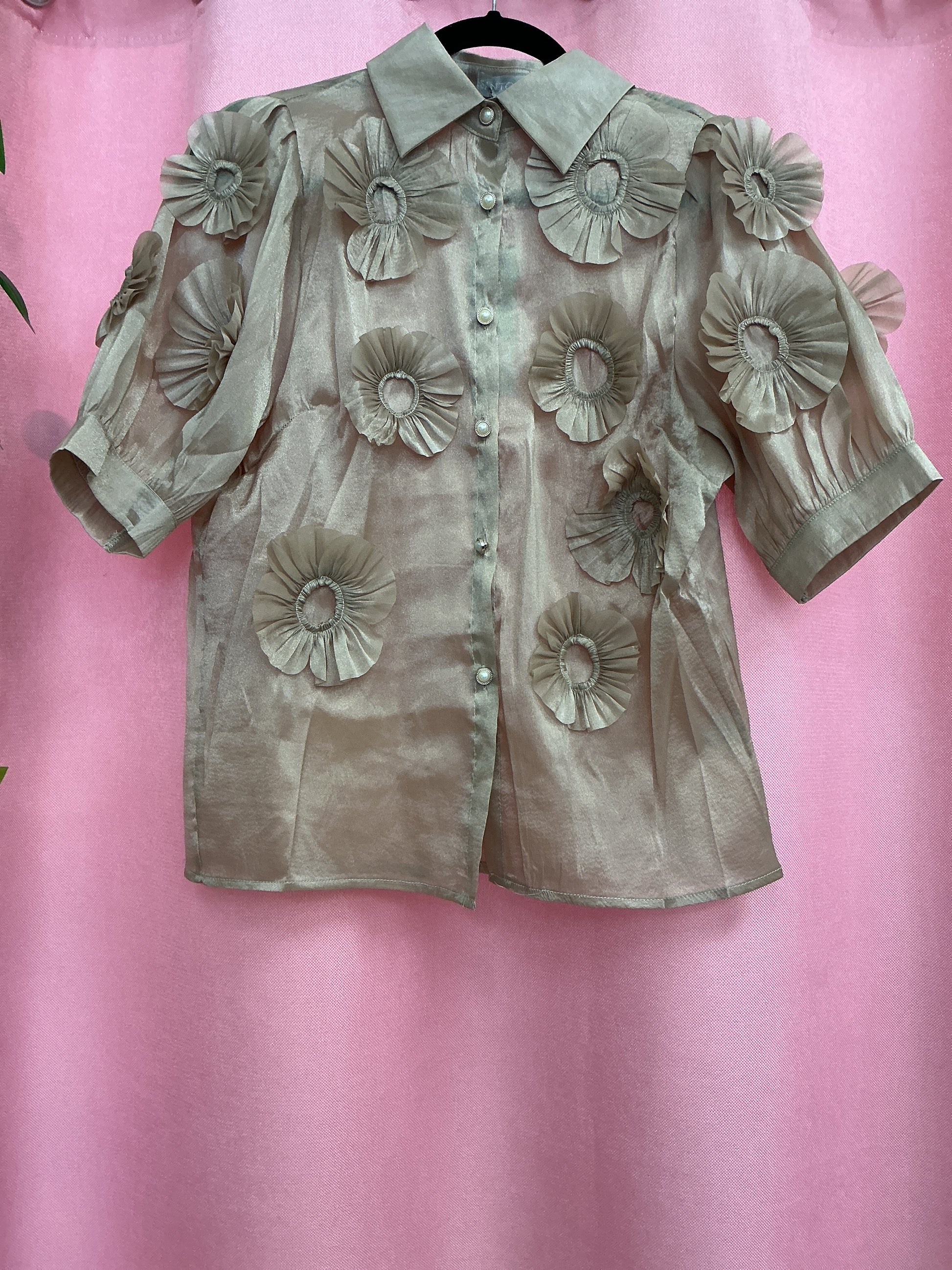 Increase quantity for Blusa Bordada con Flores y Manga Corta