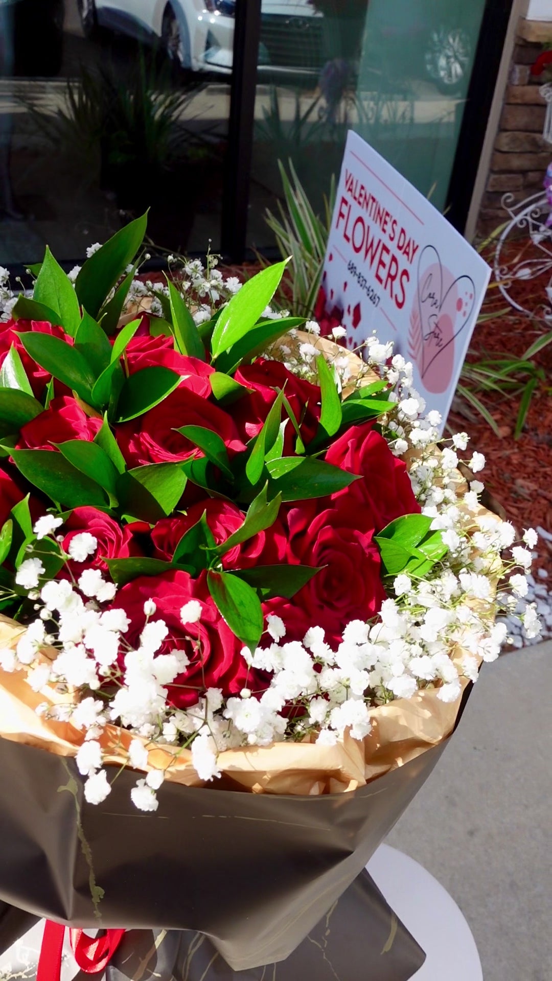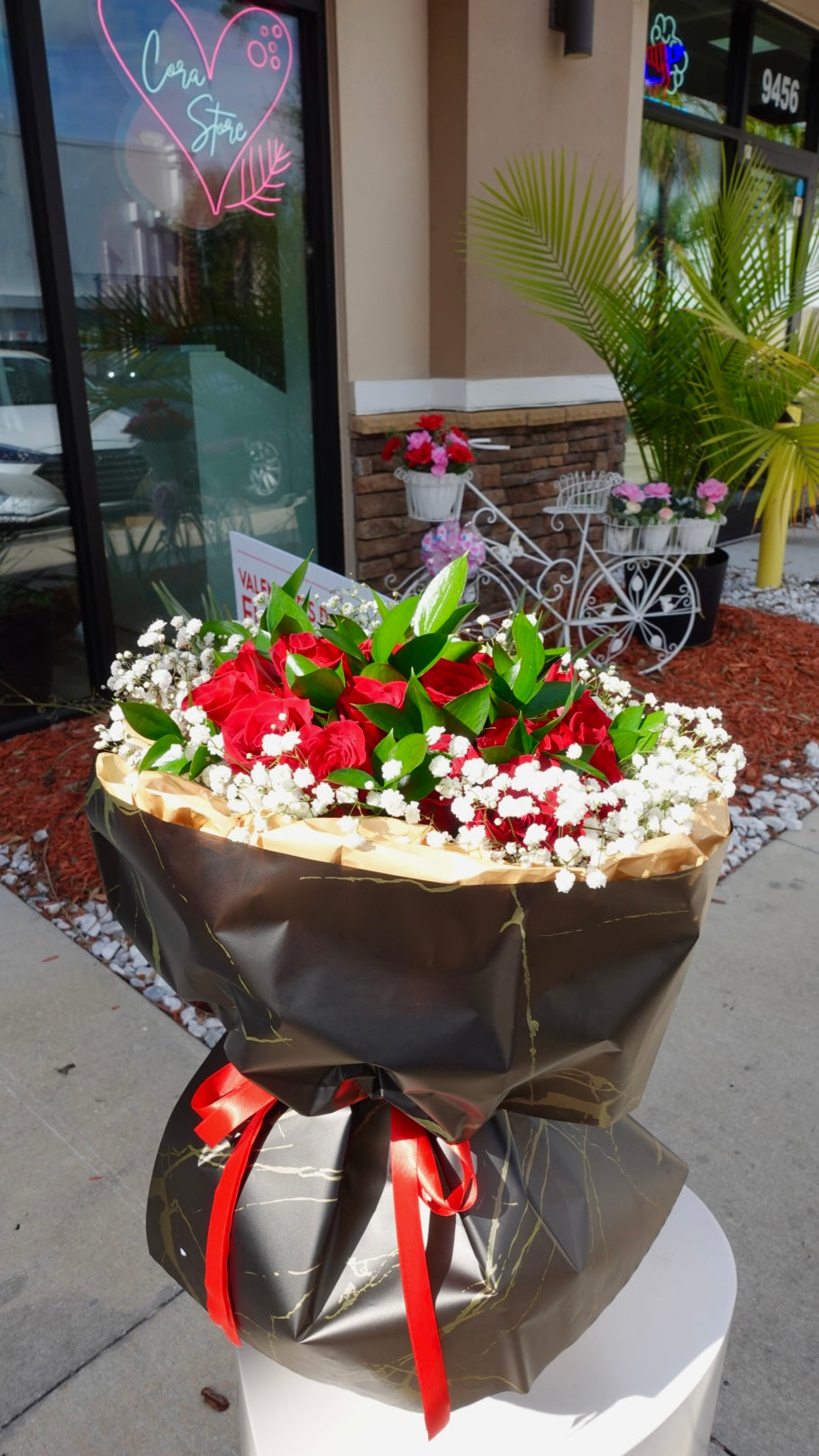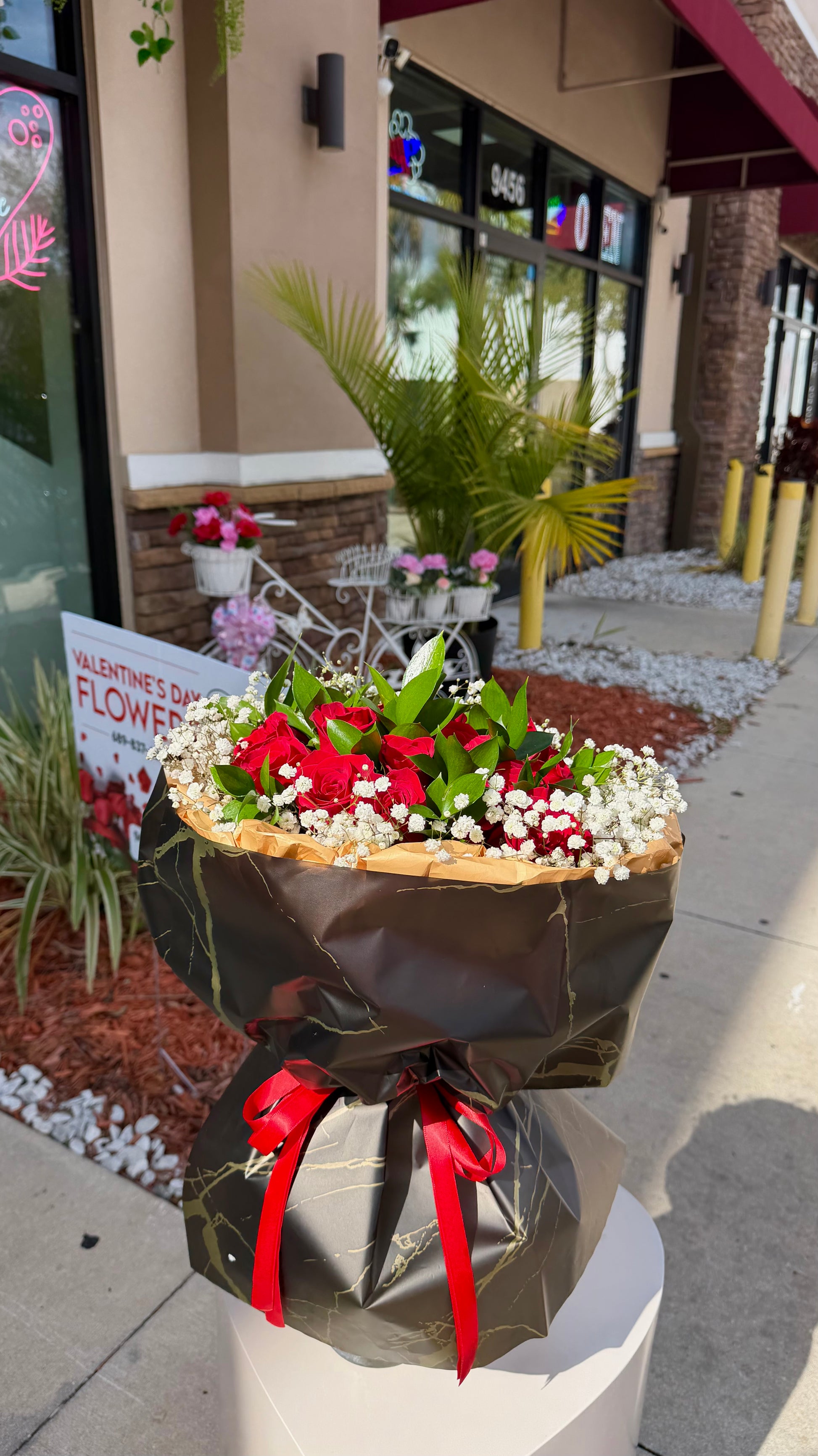 A striking bouquet of 20 premium red roses, wrapped in elegant black and gold paper for a bold, romantic look. Ideal for Valentine’s Day, anniversaries, or any moment meant to make a powerful impression.
