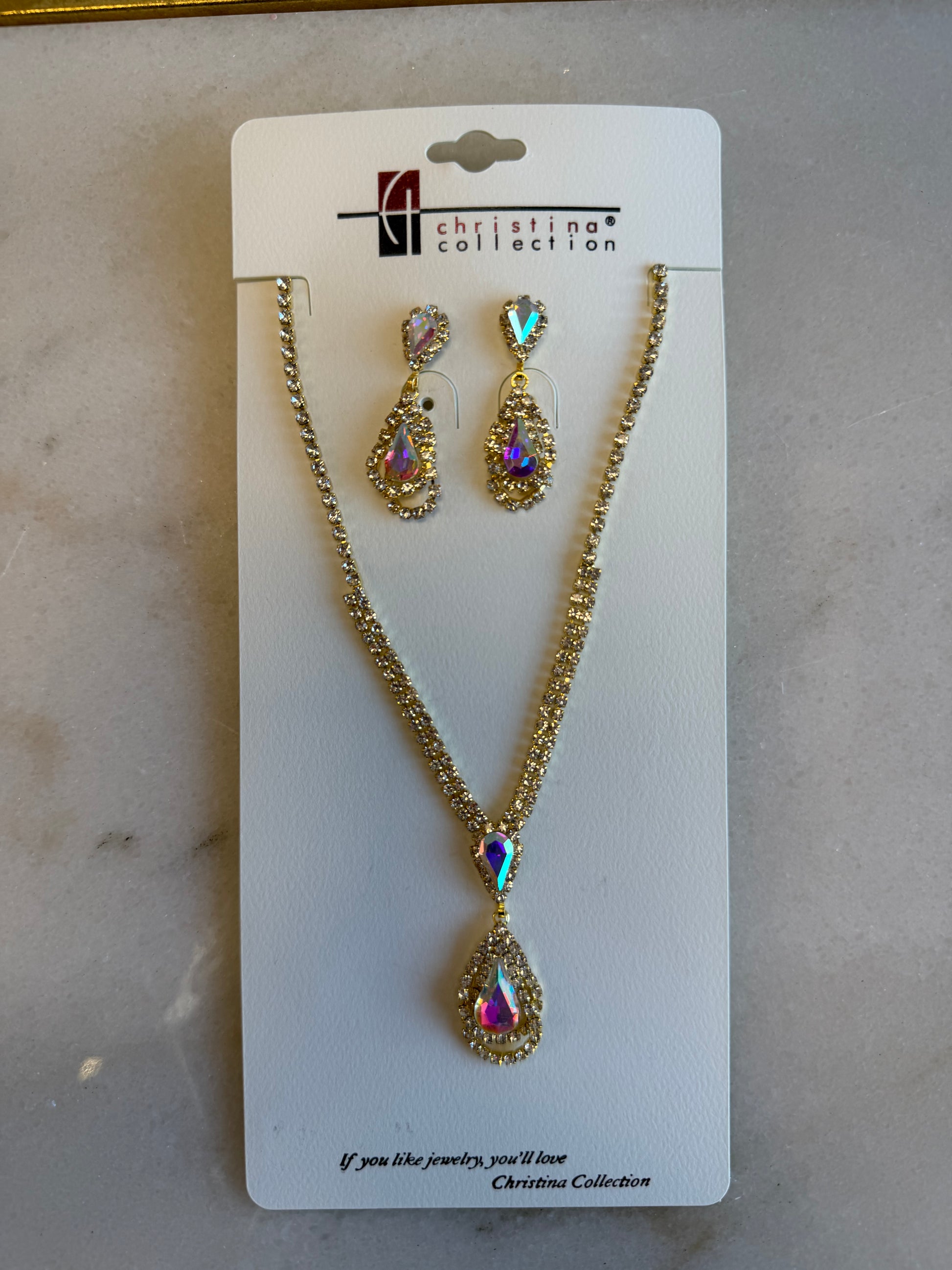 Introducing the Prism Drop set, complete with a stunning pendant and matching earrings. Made from high-quality materials, the set features a unique prism design that will catch the light and add a touch of elegance to any outfit. Perfect for any occasion, this set is a must-have for any fashion-forward individual.
