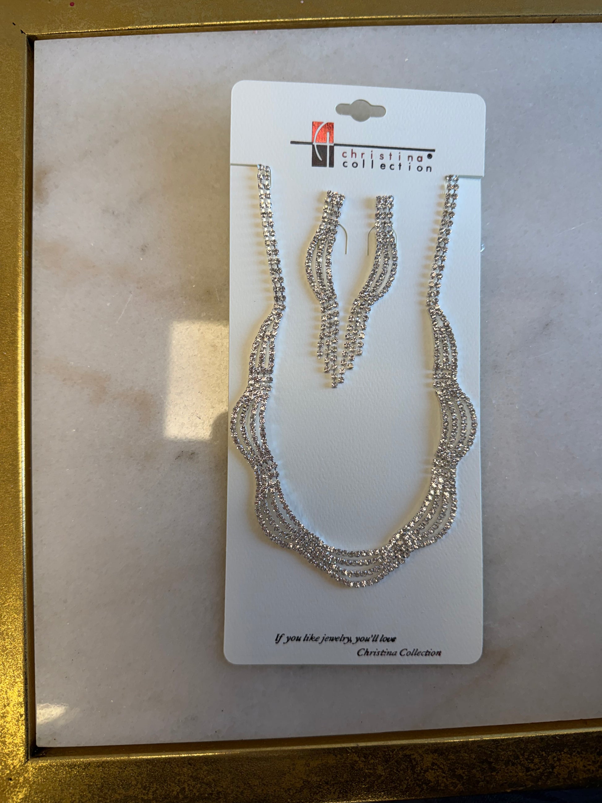 Shine like a star with Río de brillos necklace and earrings set. Made with stunning rhinestones and a delicate chain, this set will add a touch of glamour to any outfit. Make a statement and elevate your style with Río de brillos.
