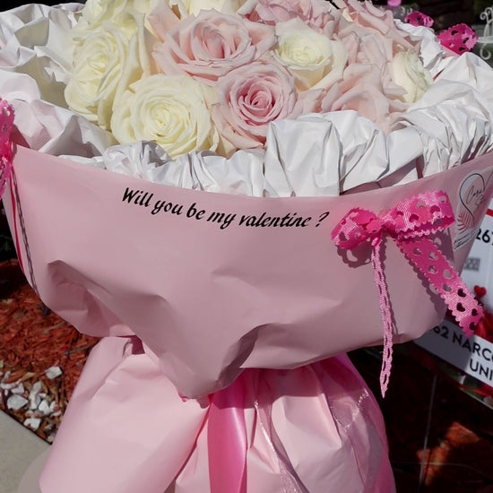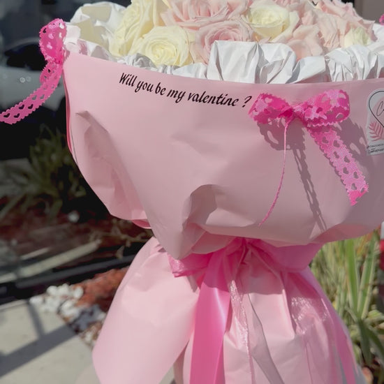 A curated bouquet of 20 premium roses in soft, romantic tones. Wrapped in elegant paper that enhances its presentation, this arrangement is perfect for proposals, meaningful surprises, or gifting with intention.